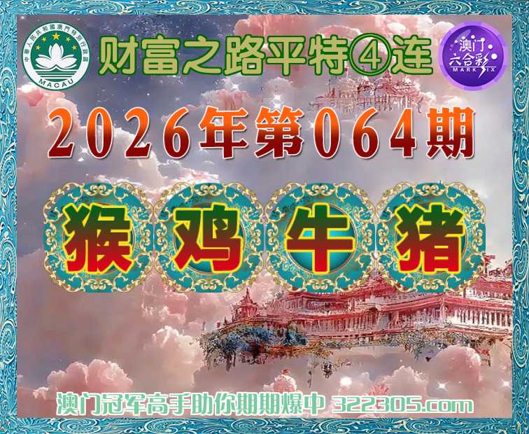 064期:【财富之路】 😜平特④连😜【猴鸡牛猪】开:猴23,鸡34,牛18,猪08准